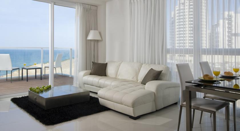 Отель Blue Weiss, находится на прекрасном побережье куротного города Нетания и все номера свиты, ссостоящие из спальны  с террасой и салона (а также  с миникухней) с видом на море. Специальный лифт доставляет отдыхающих с набережной - к  кромке моря.